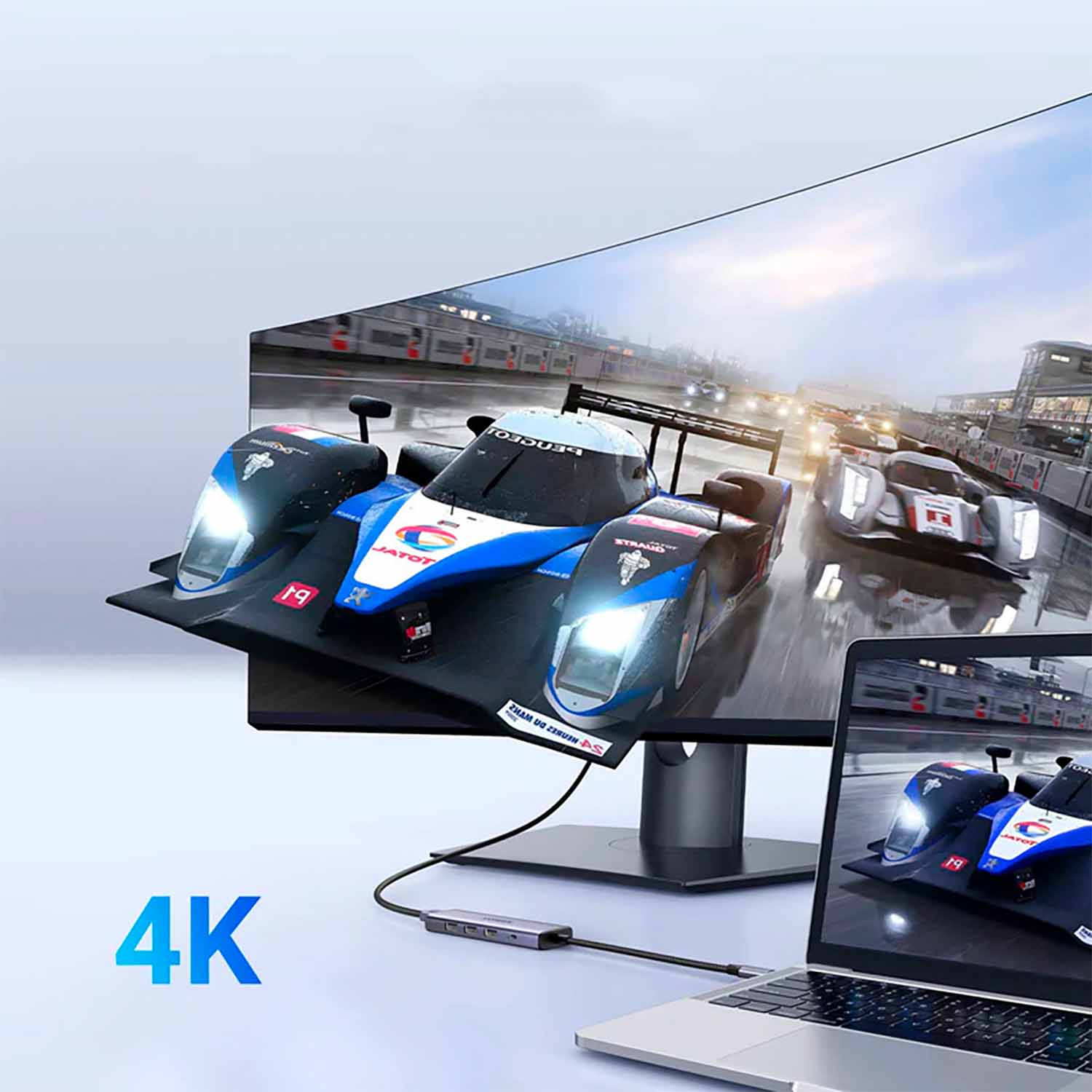 El adaptador UGREEN CM511 ofrece una solución completa para tus necesidades de conectividad, todo en un solo dispositivo compacto. Con múltiples puertos, incluyendo USB-C, USB 3.0 y HDMI 4K, este adaptador te permite conectar una variedad de dispositivos a tu computadora o portátil con facilidad.