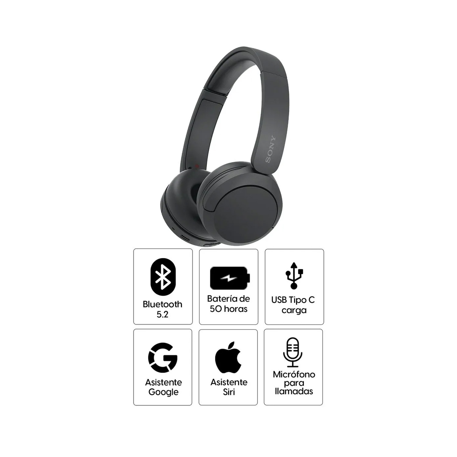 Los Sony WH–CH520 Bluetooth en color negro ofrecen un equilibrio ideal entre calidad de sonido, comodidad y practicidad para el día a día. Con un diseño ligero y moderno, integran funciones inteligentes que mejoran la experiencia de escucha, ya sea en casa, en la oficina o en movimiento.