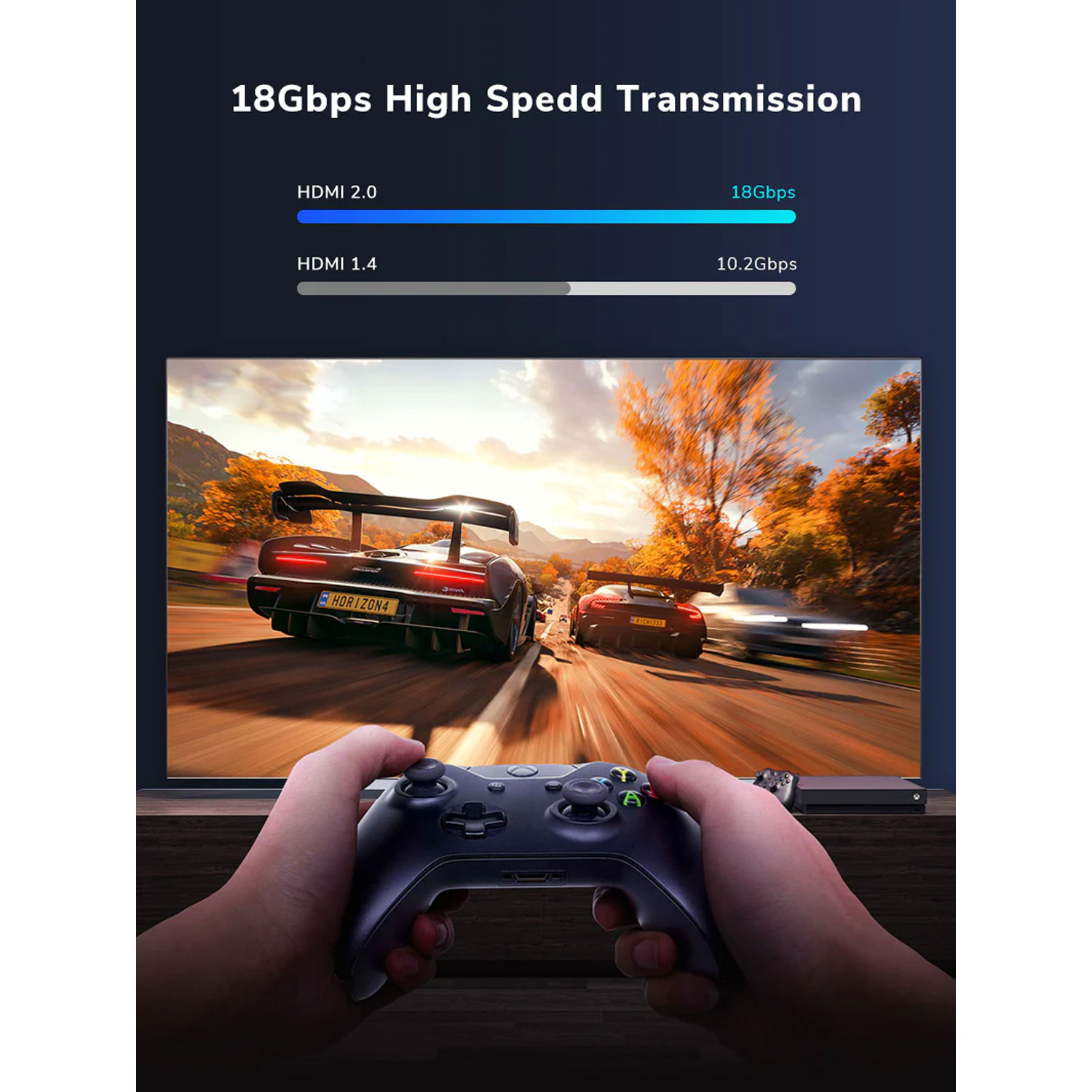 Soporta resoluciones de hasta 4K Ultra HD (3840×2160) a 60Hz, entregando imágenes nítidas y colores vibrantes para televisores, monitores, proyectores y consolas de videojuegos. Mantiene la calidad de video sin compresión en toda su longitud.