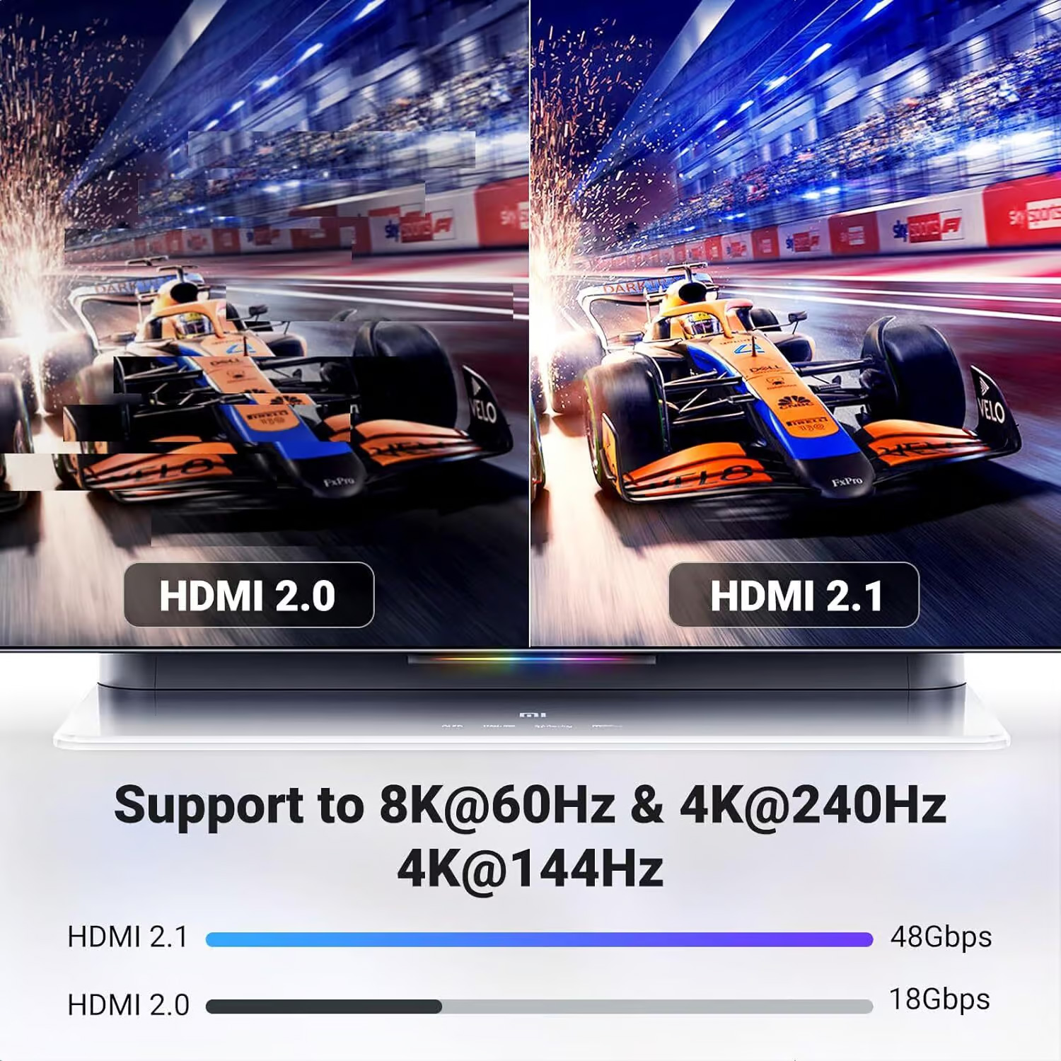 Soporta resoluciones hasta 8K a 60Hz, ofreciendo imágenes nítidas, colores precisos y sincronización perfecta entre audio y video. Ideal para gaming, streaming y uso profesional.