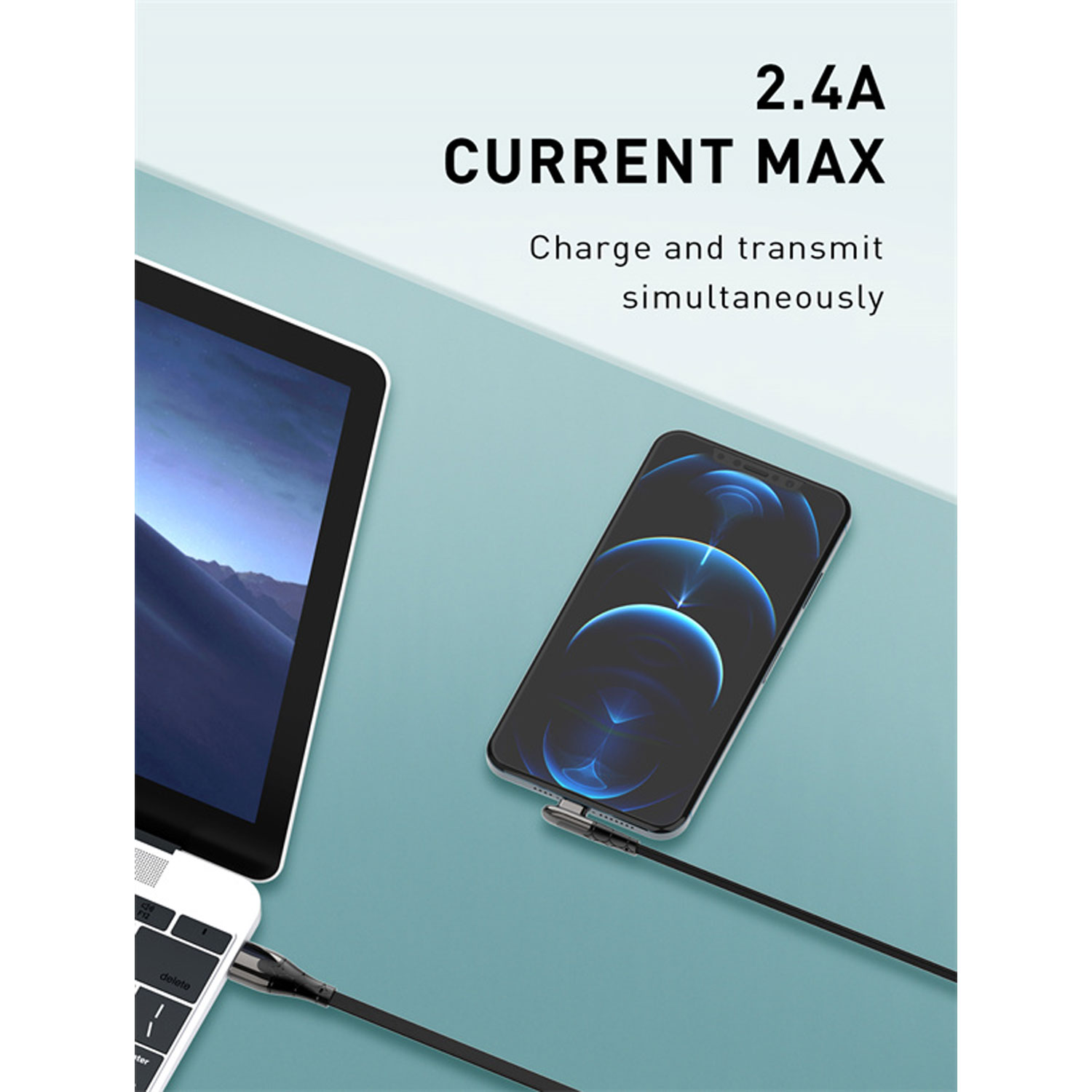 El conector USB-C tiene un diseño angular que reduce la tensión en el puerto del dispositivo, especialmente útil para usar el equipo mientras se carga en espacios estrechos o con fundas voluminosas. Minimiza el riesgo de daño por doblez constante.