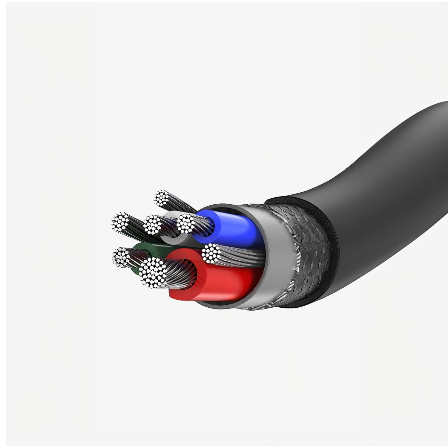La cubierta trenzada protege el cable de torsiones, doblado y desgaste, prolongando su vida útil y manteniendo la estética incluso con uso intensivo.