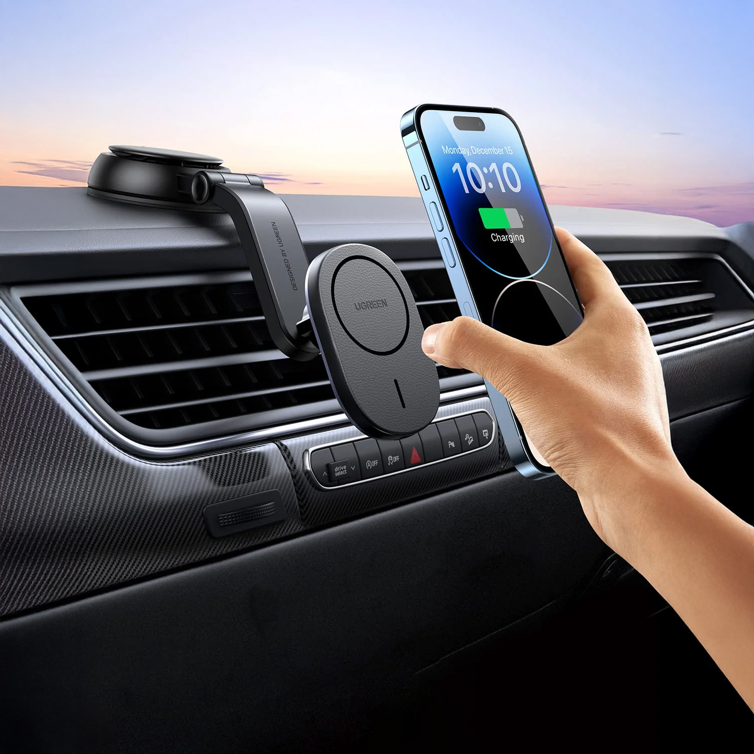 El precio original era: S/64.00.S/45.00El precio actual es: S/45.00.Cargador Magnetico para Carro Ugreen iPhone 15 Magsafe Soporte Giro CD345 25925 Negro
