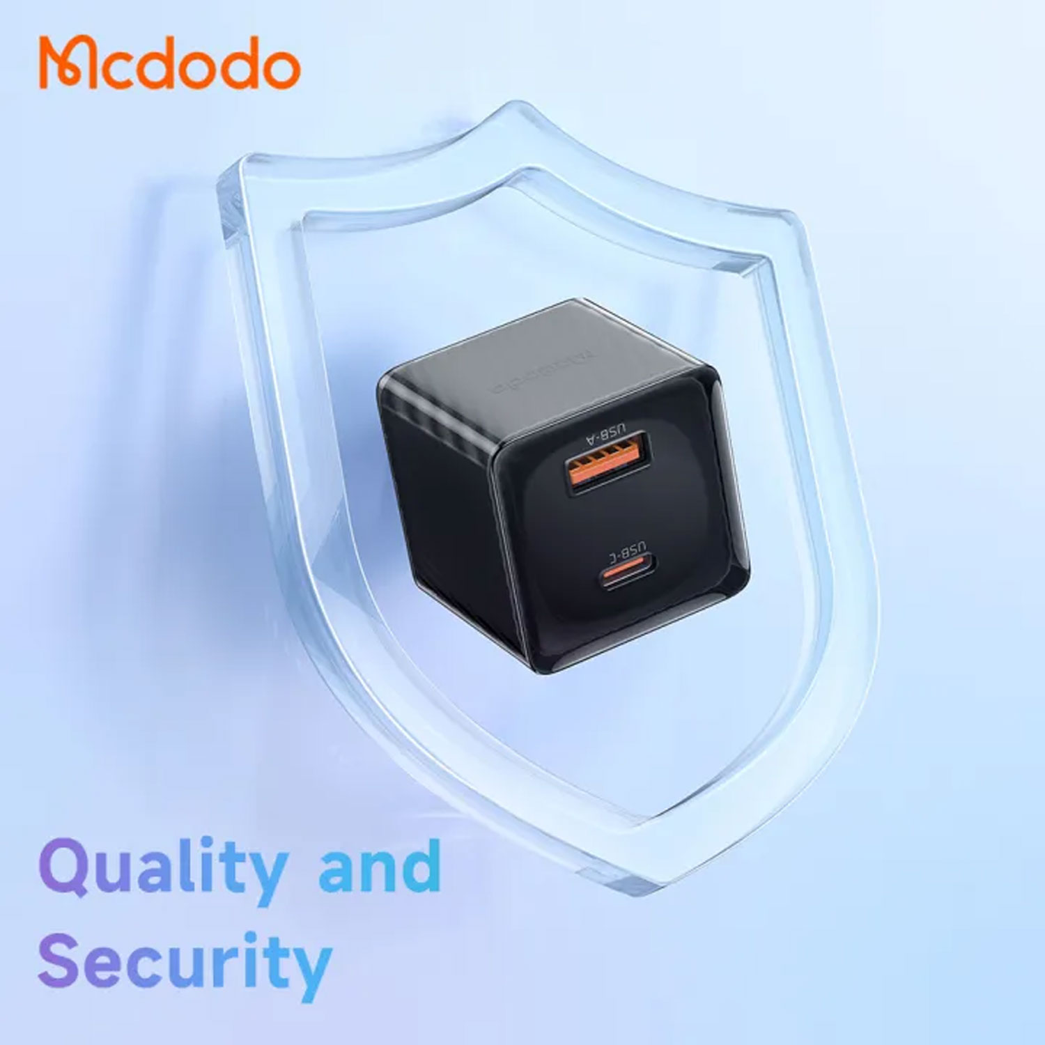 El cargador Mcdodo 33W GaN PD Dual Output permite cargar dos dispositivos de manera rápida y segura, optimizando la entrega de energía gracias a su tecnología GaN. Su diseño compacto y ligero facilita el transporte, ideal para uso diario, oficina o viajes.