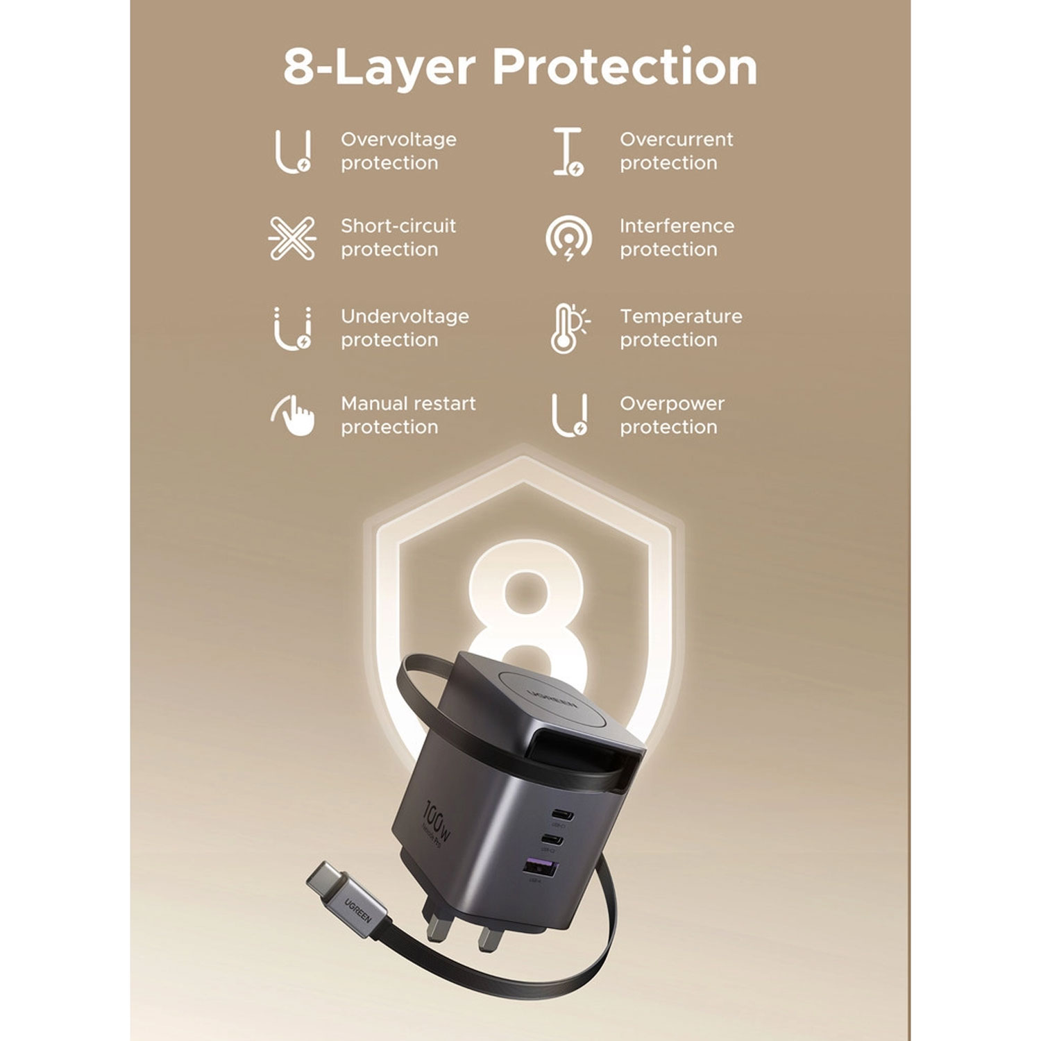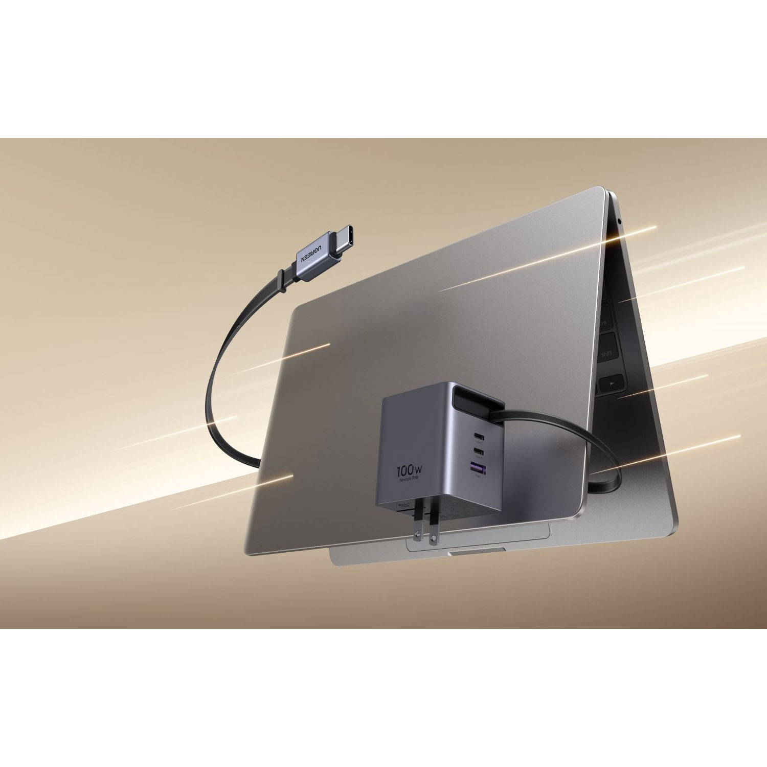 Cargador Ugreen 65W Gan Con Cable Retractil USB-C Carga Rapida X615-65824 Gris