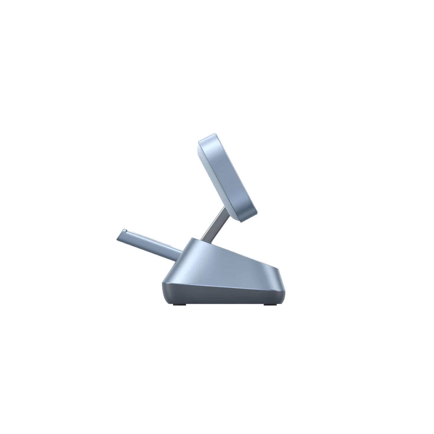 Su formato vertical ahorra espacio en la superficie y mantiene los dispositivos erguidos para visualizar notificaciones mientras se cargan. La estructura es estable y con base antideslizante.