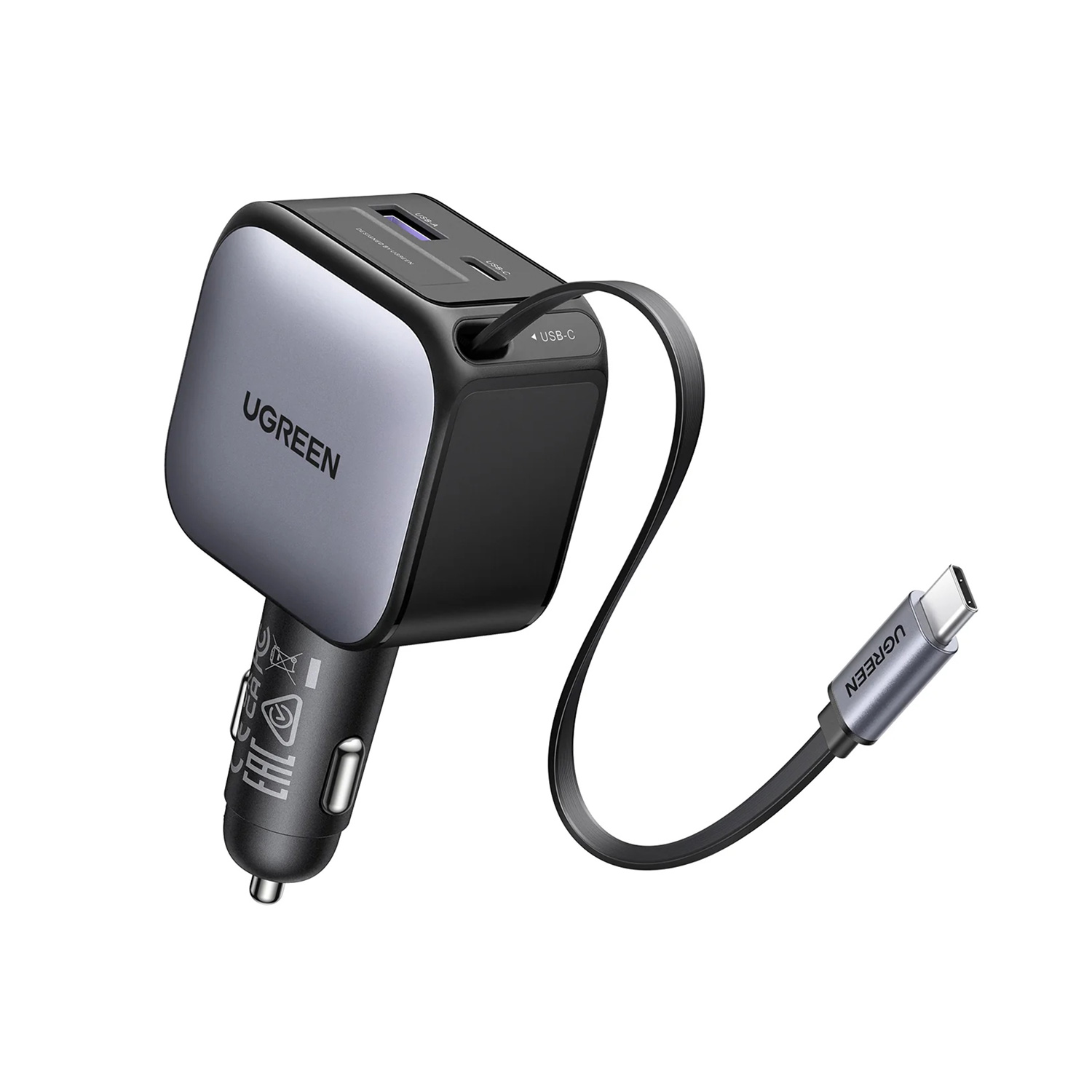 El cargador para auto UGREEN 90W Fast Car Charger EC603-55909B ofrece una solución práctica y potente para mantener tus dispositivos cargados durante tus viajes. Su diseño con cable retráctil y múltiples puertos garantiza comodidad, orden y eficiencia dentro del vehículo.