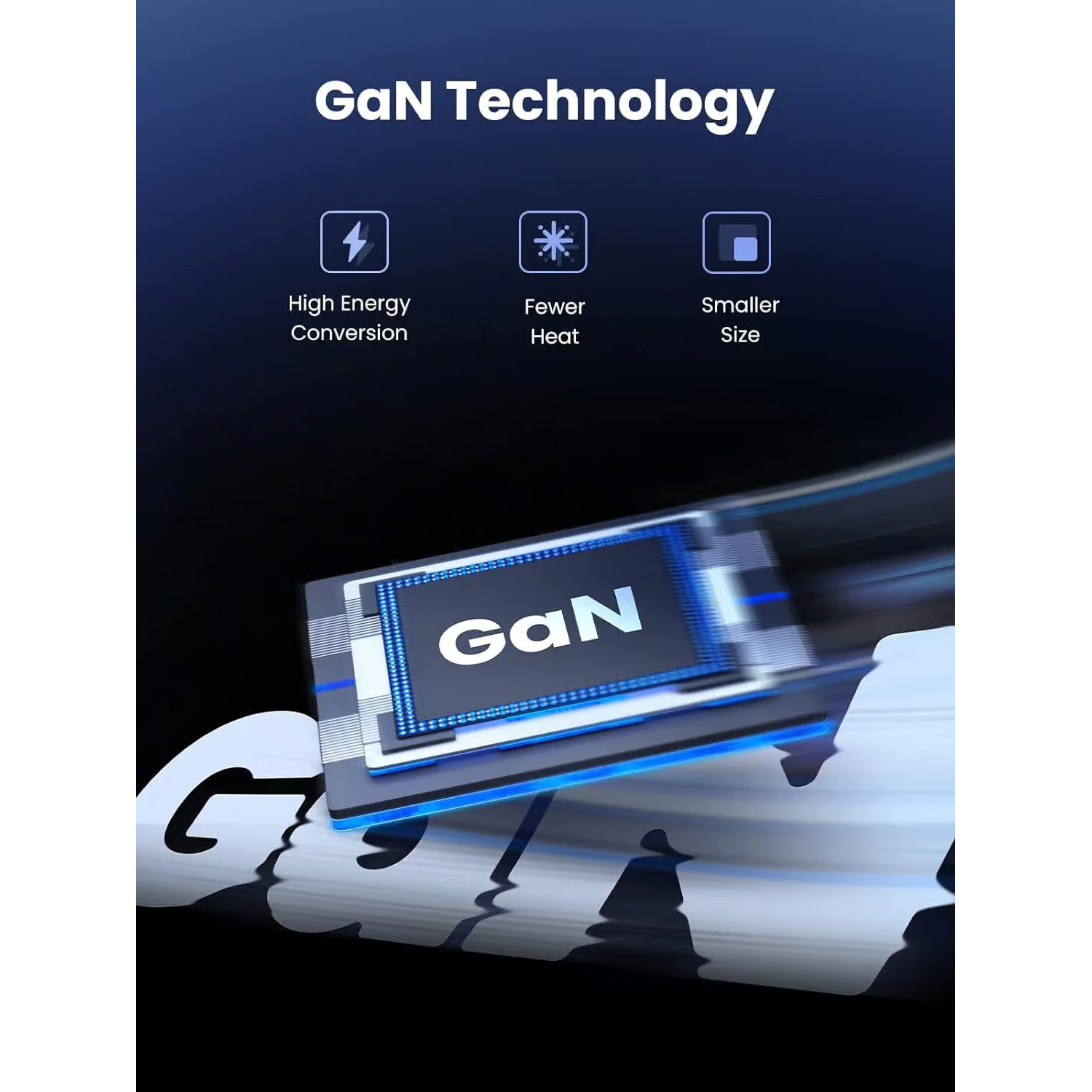 La tecnología GaN permite un diseño más pequeño y eficiente, reduciendo el calor y aumentando la durabilidad del cargador.