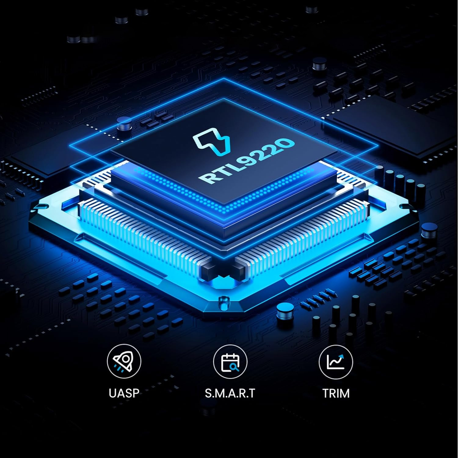 Compatible con UASP y TRIM: La carcasa M.2 es compatible con los protocolos UASP y TRIM, lo que mejora la velocidad de lectura y escritura. La función de suspensión automática protege la unidad, lo que la hace económica y sostenible.