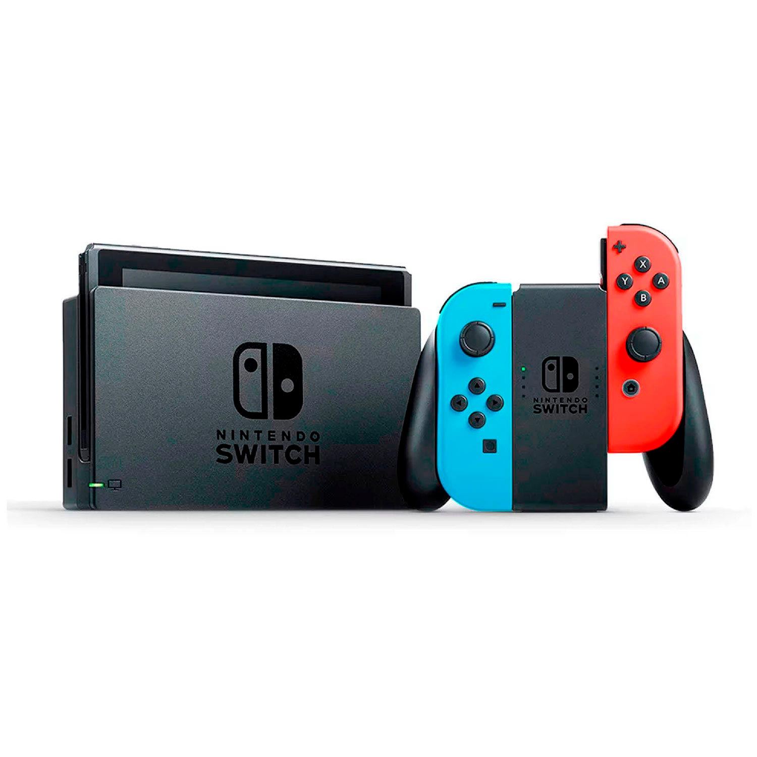 Este paquete incluye la consola Nintendo Switch y la base de Nintendo Switch en negro, con controles Joy-Con izquierdo y derecho en azul neón (L) y rojo neón (R). tambien un codigo digital del videojuego mario kart 8 deluxe.