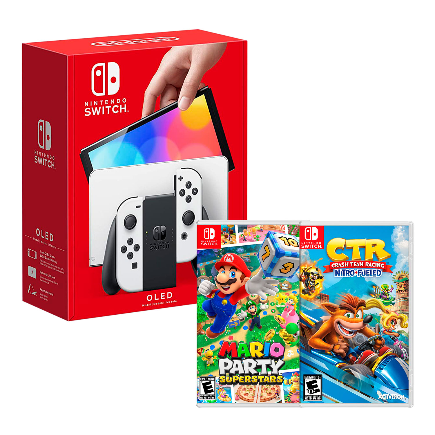 Consola Nintendo Switch Modelo Oled Blanco + Mario Superstar + Super Mario Bros + Crash Bandicoot