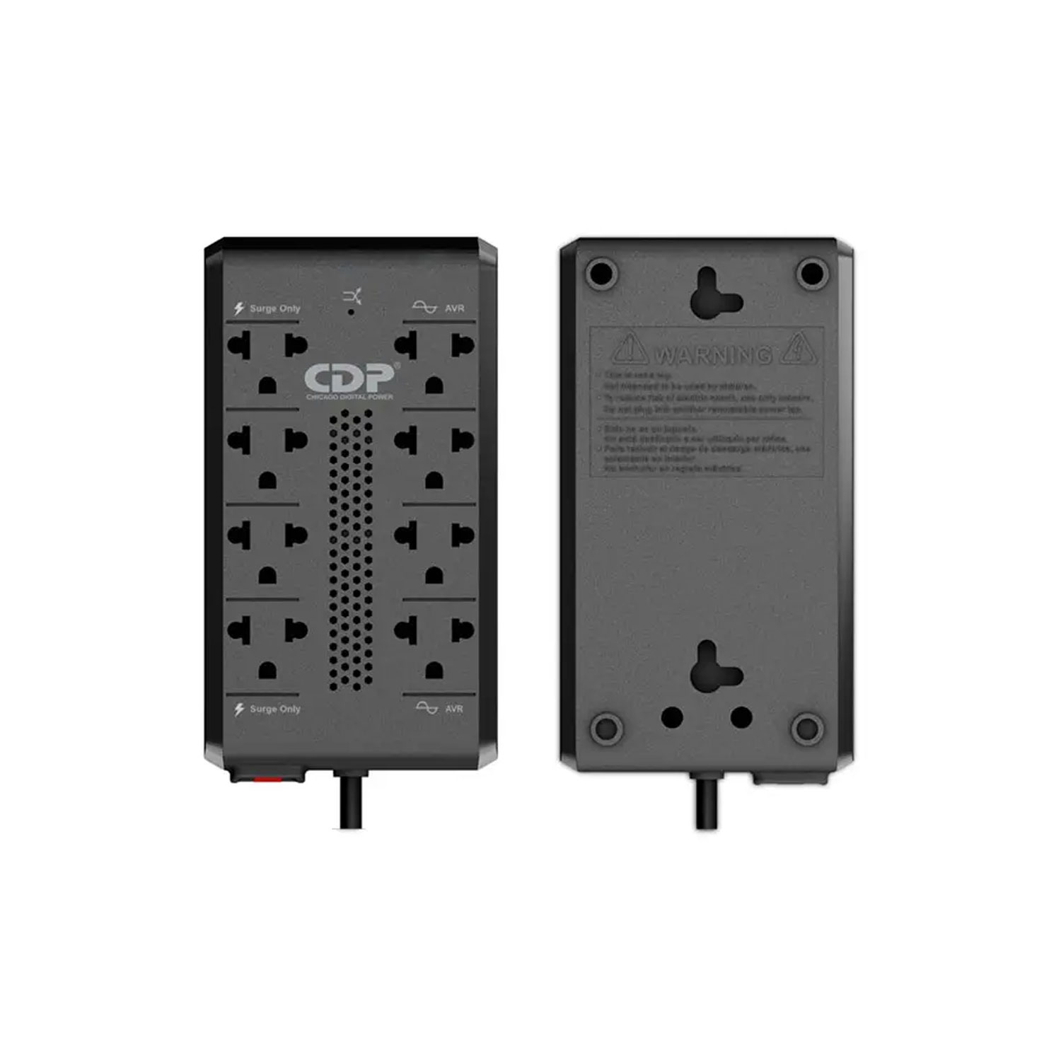 El precio original era: S/207.00.S/145.00El precio actual es: S/145.00.Estabilizador CDP RAVR1008I 900VA 450W 8 Tomas Negro
