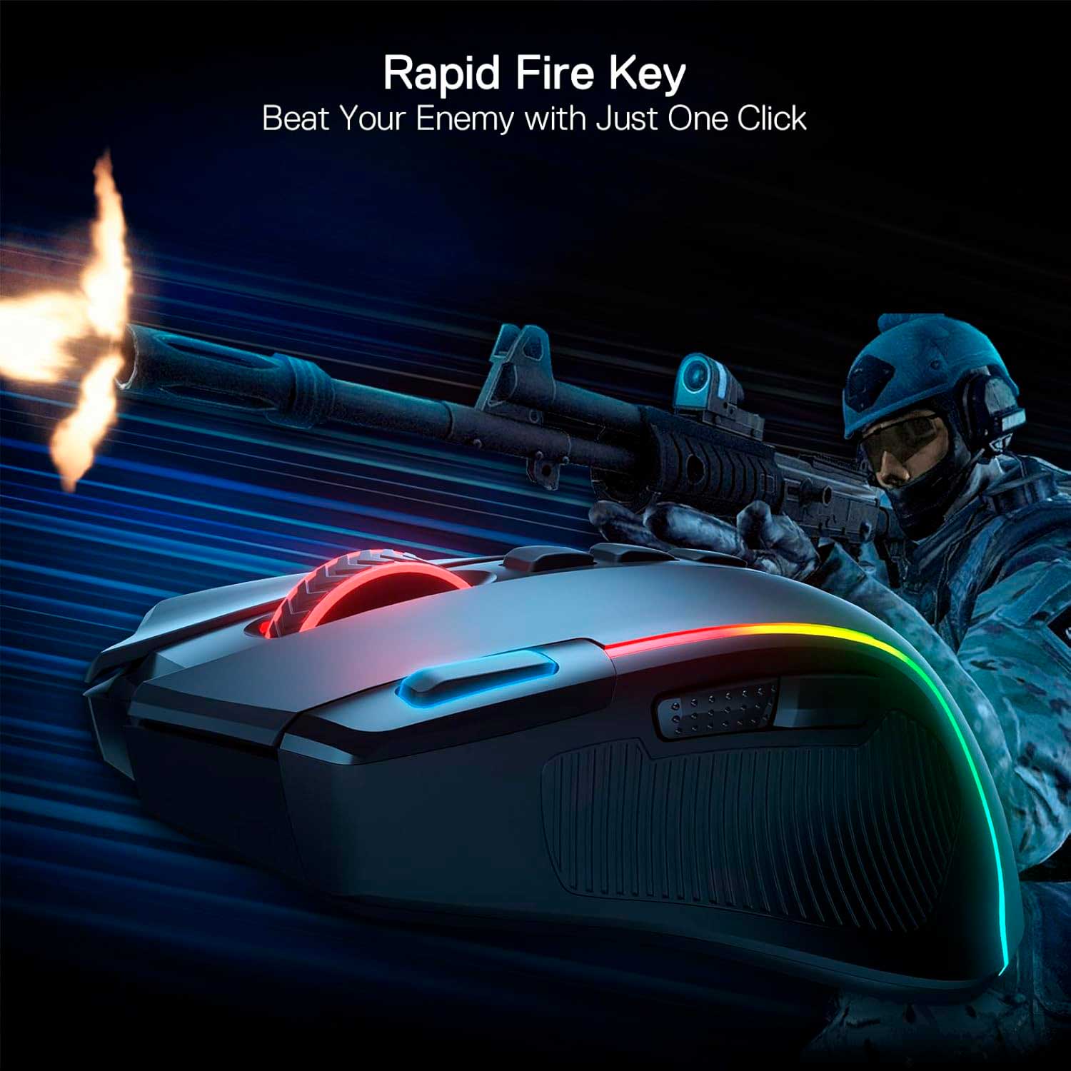 7 botones programables, todos editables con combinaciones de teclas tácticas personalizables en cualquier juego o trabajo en el que estés participando. 1 botón de disparo rápido + 2 botones macro laterales te ofrecen una mejor experiencia de juego y trabajo.