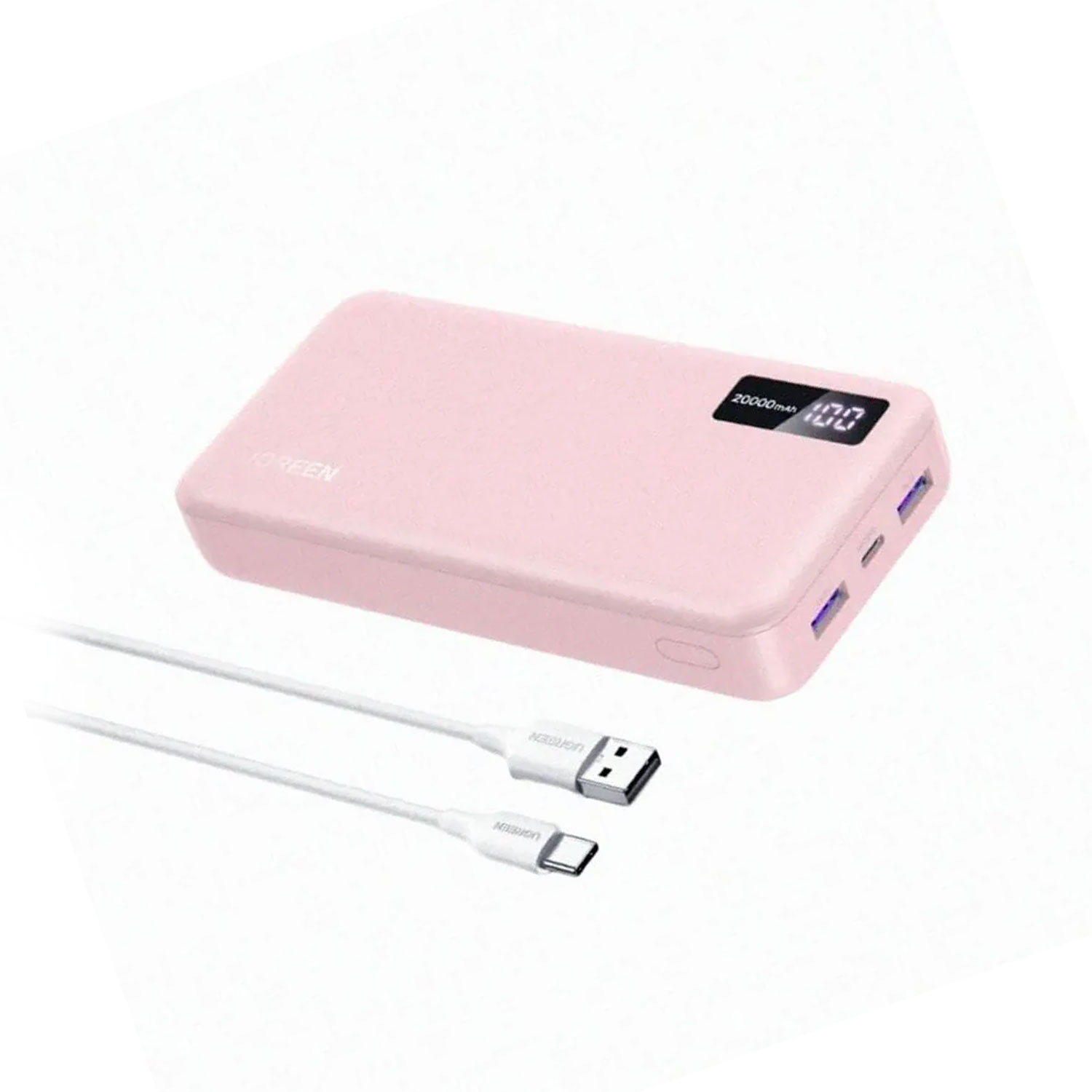 El Power Bank UGREEN 20W 20000 mAh en color rosa está diseñado para ofrecer una solución de energía portátil confiable y eficiente en cualquier situación. Con una batería de alta capacidad y tecnología de carga rápida de 20 W, este power bank es ideal para mantener tus dispositivos móviles cargados durante viajes, días fuera de casa o jornadas intensivas de uso.