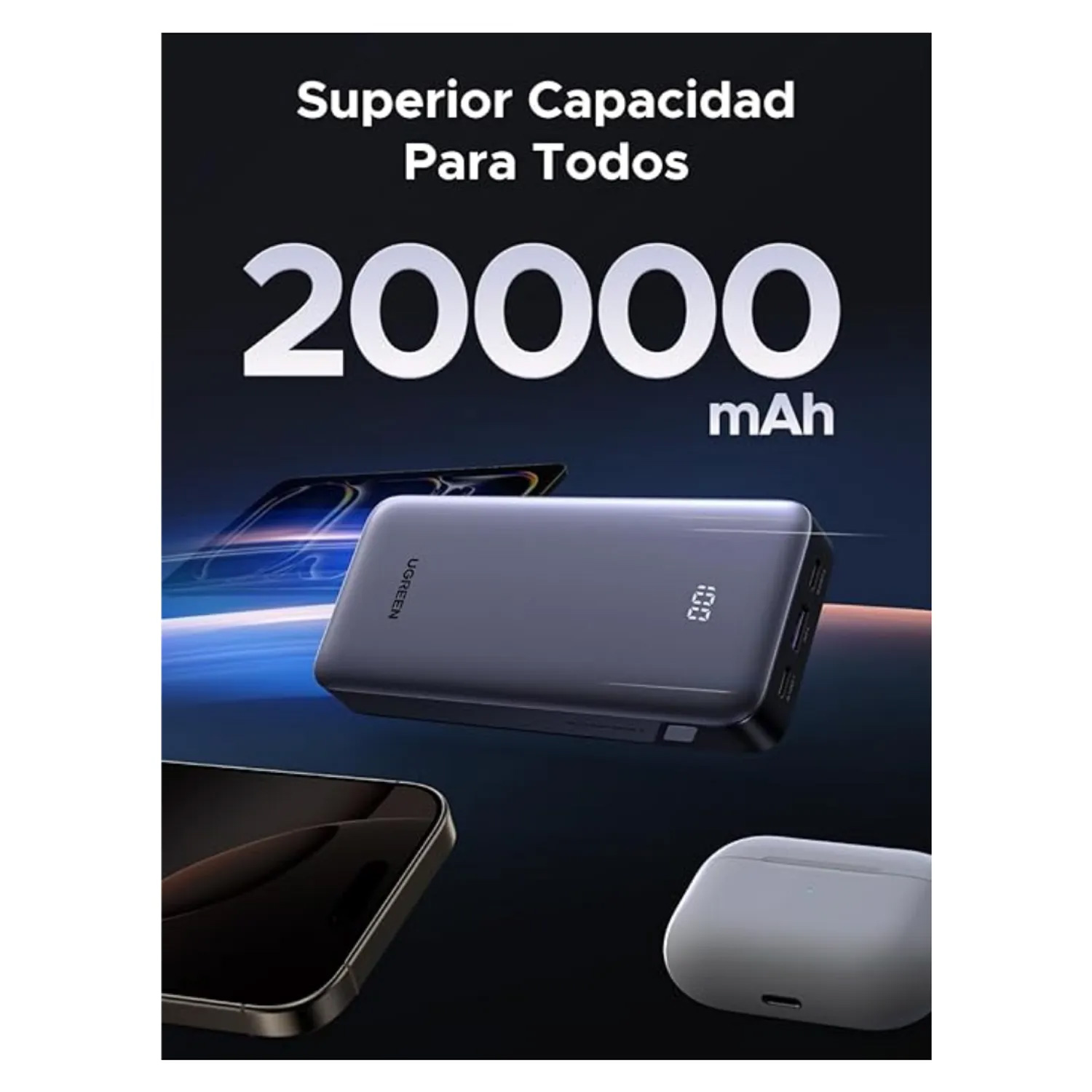 El precio original era: S/164.00.S/115.00El precio actual es: S/115.00.Power Bank Ugreen 30W Carga Rápida 20000mAh Negro PB532 55989B