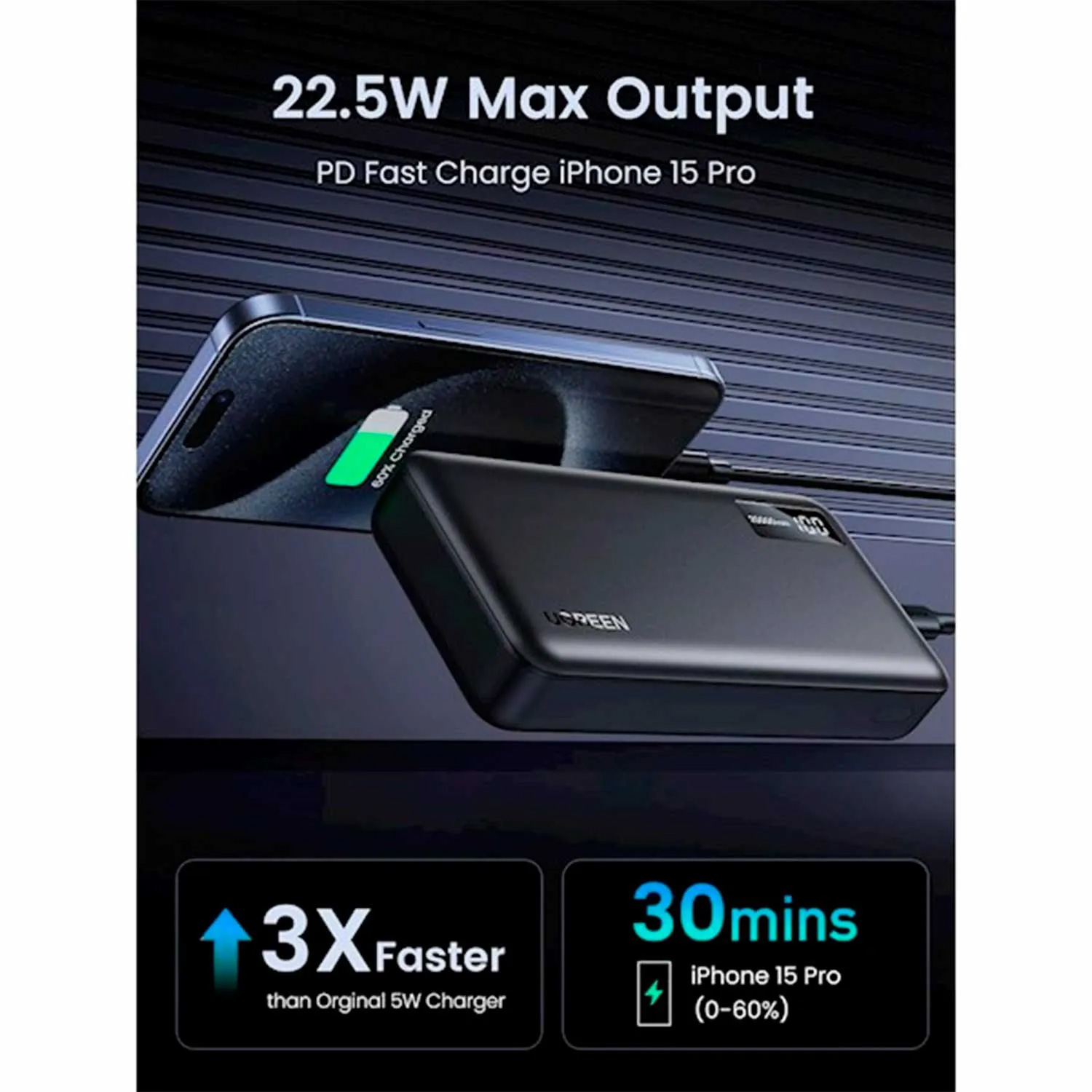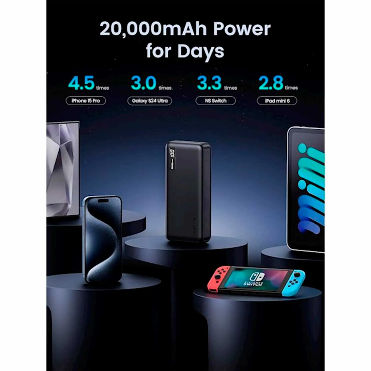 La batería portátil UGREEN PB312 con carga rápida bidireccional de 20W ofrece potencia y practicidad en un diseño compacto ideal para viajes o uso diario. Su capacidad permite recargar smartphones, tablets y otros dispositivos con total eficiencia, mientras que la función de carga simultánea te permite alimentar dos equipos al mismo tiempo.