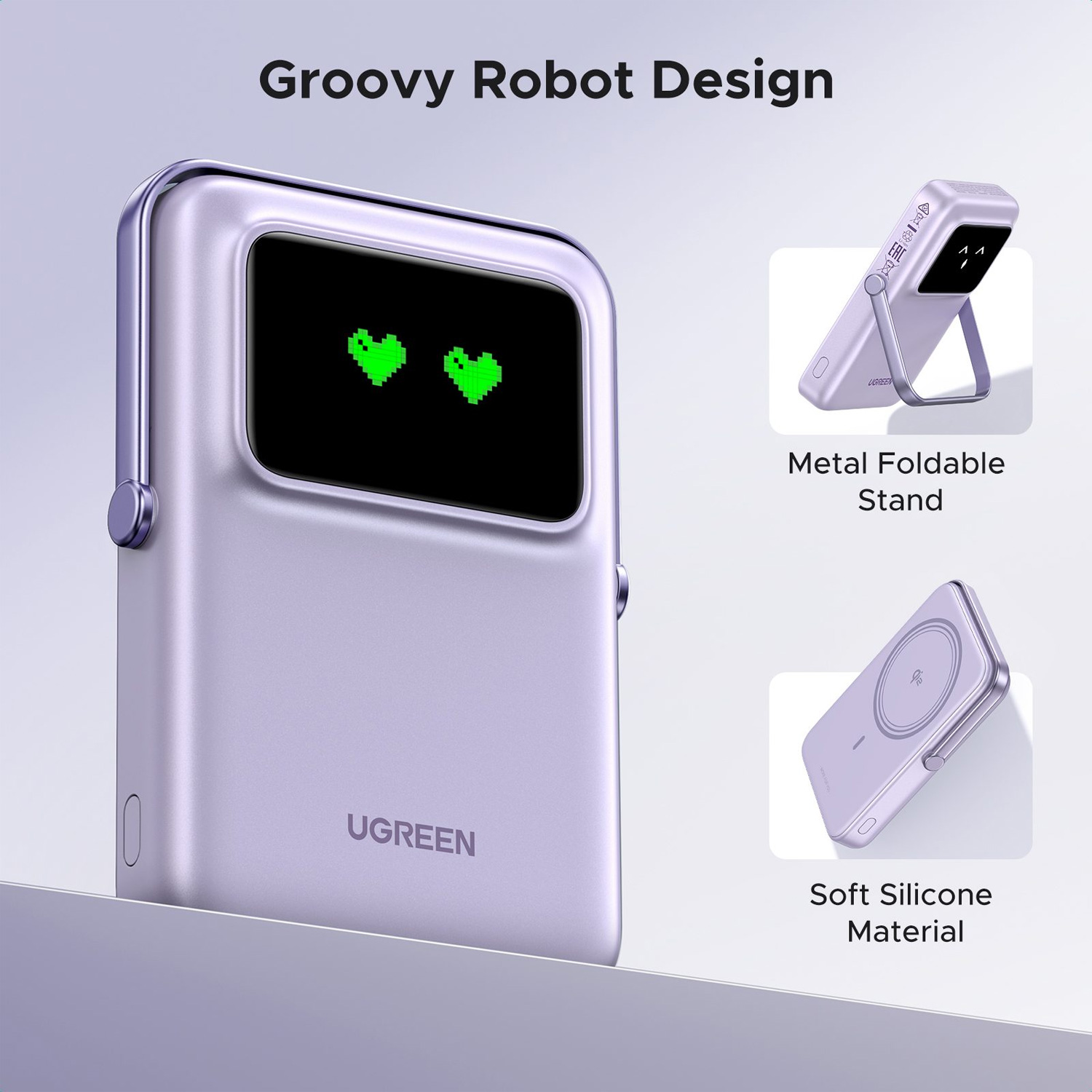 El precio original era: S/84.00.S/59.00El precio actual es: S/59.00.Power Bank Ugreen Inalambrico Magnetico Robot 5000mAh 20W Morado 35606